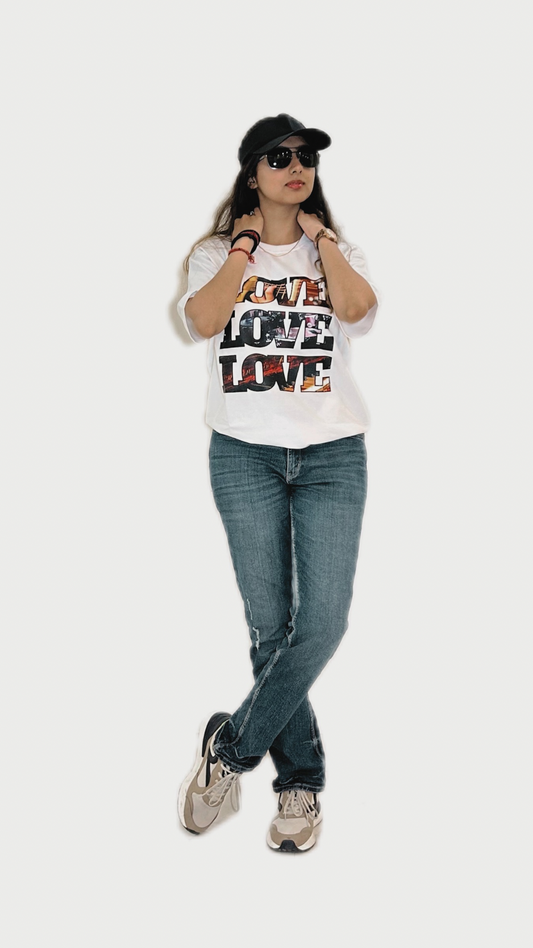 Love Love Love (Colour - Cloud | Style - Unisex | Fit - Drop Shoulder)